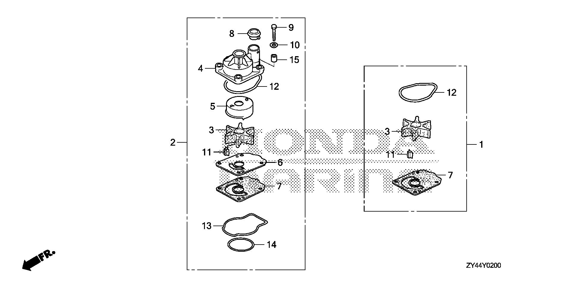 Mid - Large Outboard Engines (25 - 250hp) BF BF200 BF200AK1 LA BAEJ-1600001-1699999 WATER PUMP IMPELLER SET - Pellegrin Marine