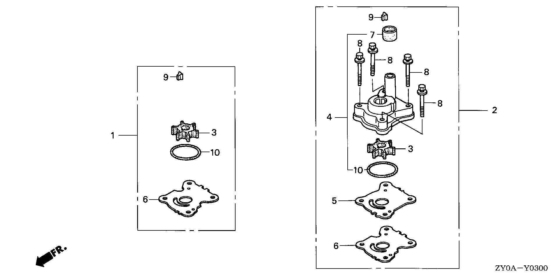 Portable Outboard Engines (2 - 20 hp) BF BF20 BF20D5 LHGA BAMJ-1200001-1299999 WATER PUMP IMPELLER KIT - Pellegrin Marine